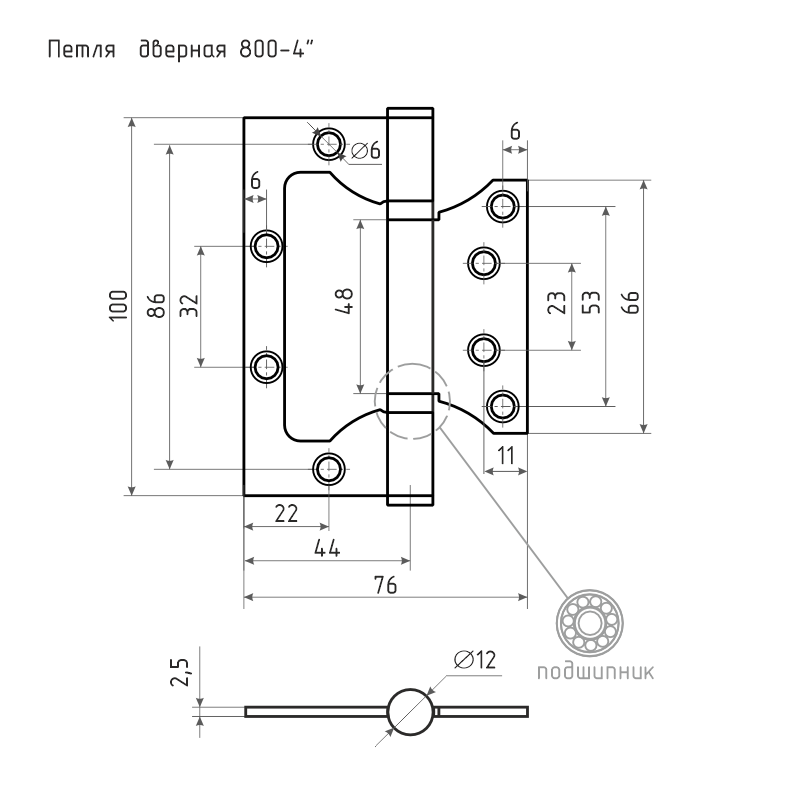 Петля без врезки 800-4" (100*75*2,5) без колп. хром универсальная