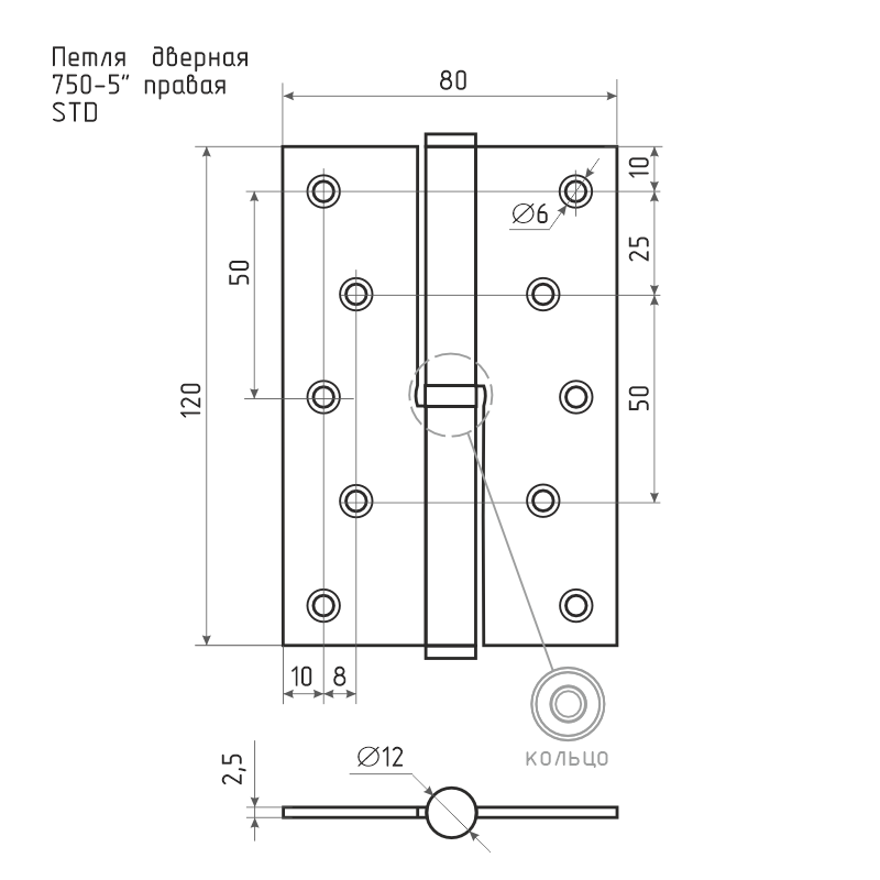 Петля левая/правая 750-5" STD (120*80*2,5) без колп.