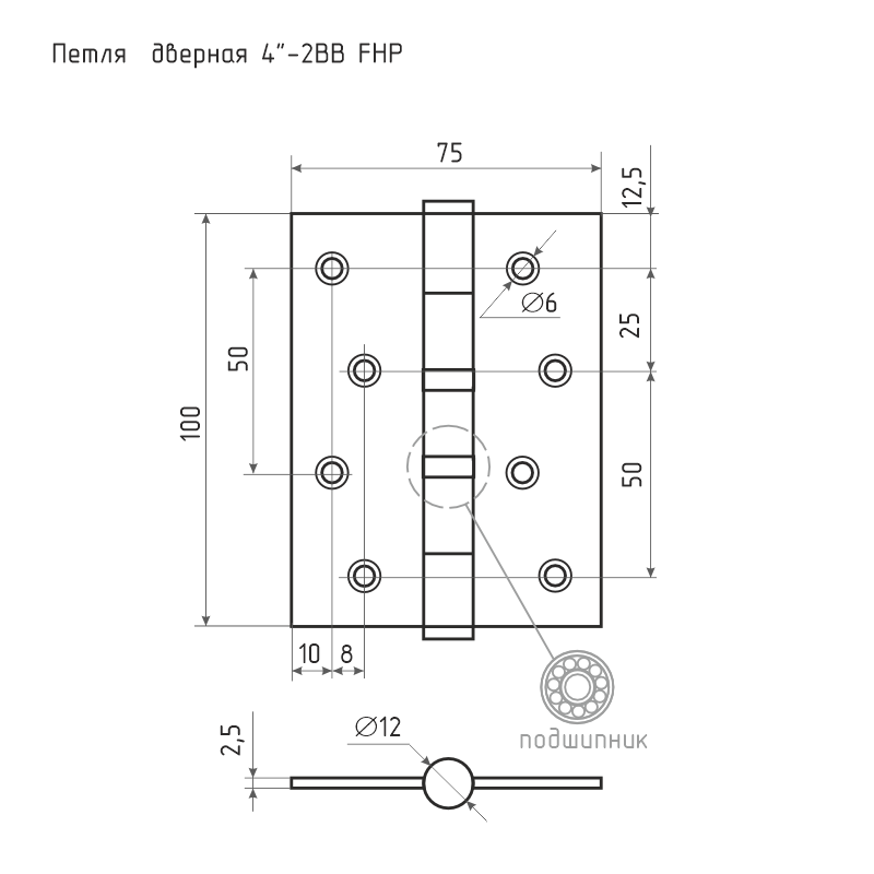 Универсальная петля для деревянных межкомнатных дверей левого/правого открывания. Не разъемная. Материал - сталь 2,5 мм, 2 подшипника. Высота 100 мм. В комплекте саморезы для установки. Многослойное гальваническое покрытие. Гарантия 5 лет.