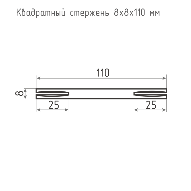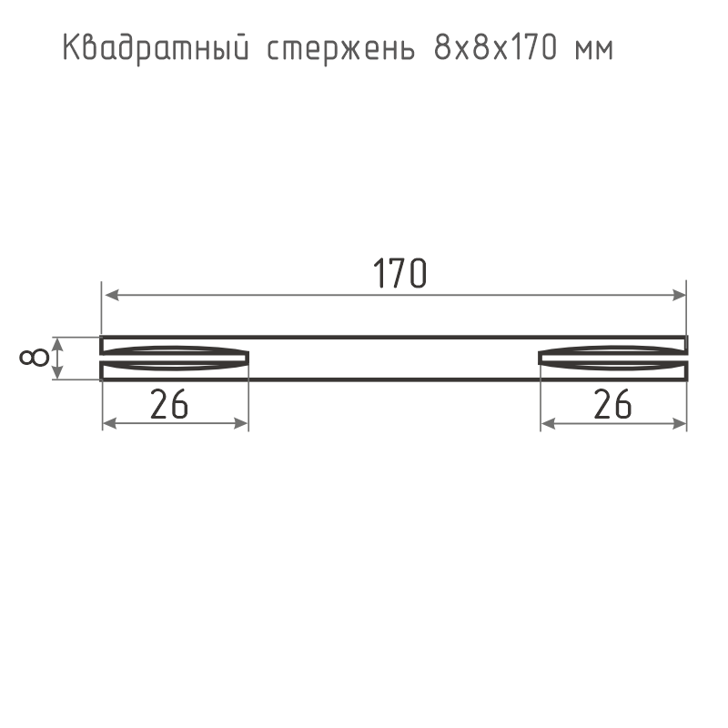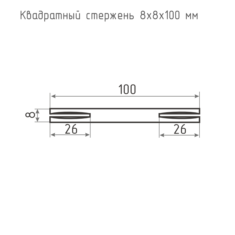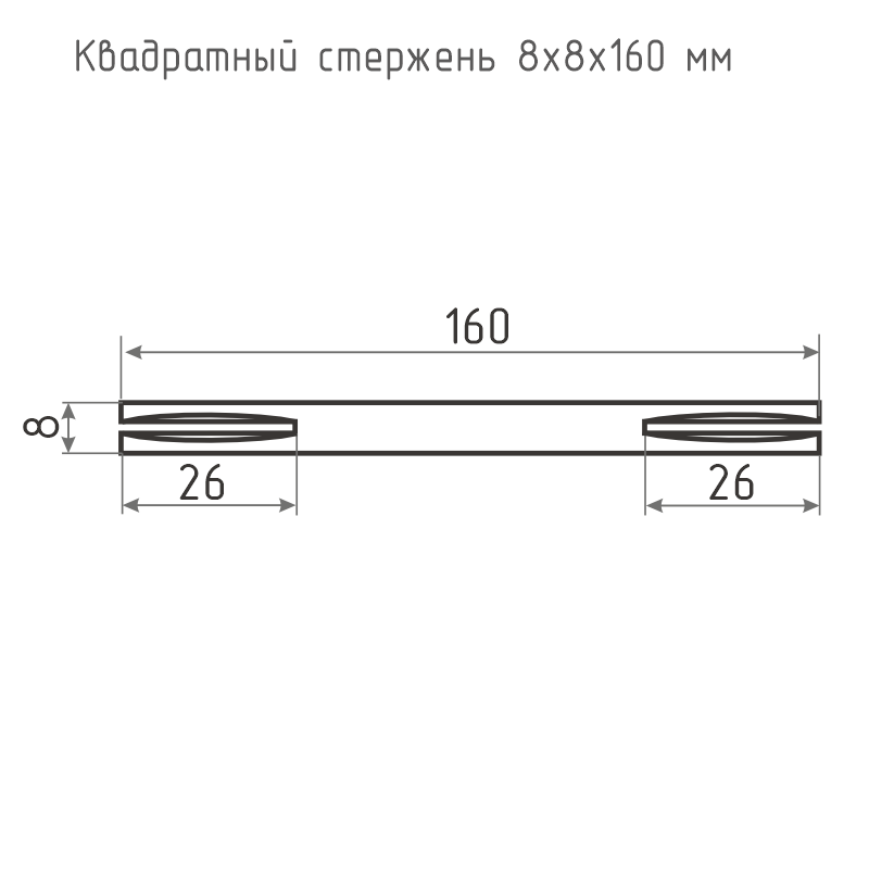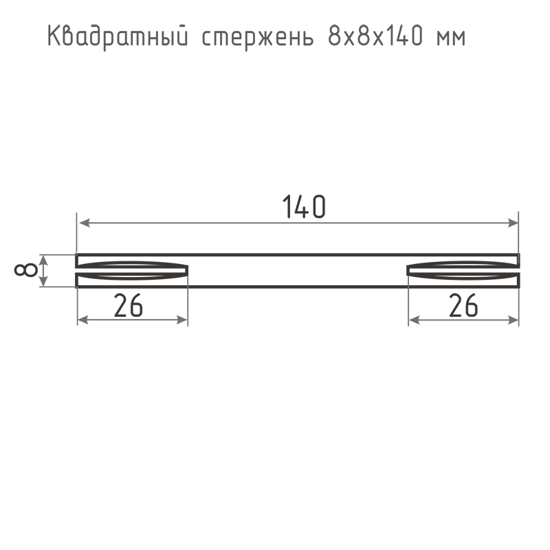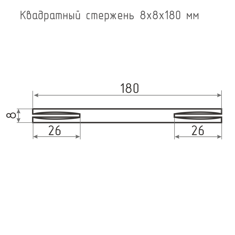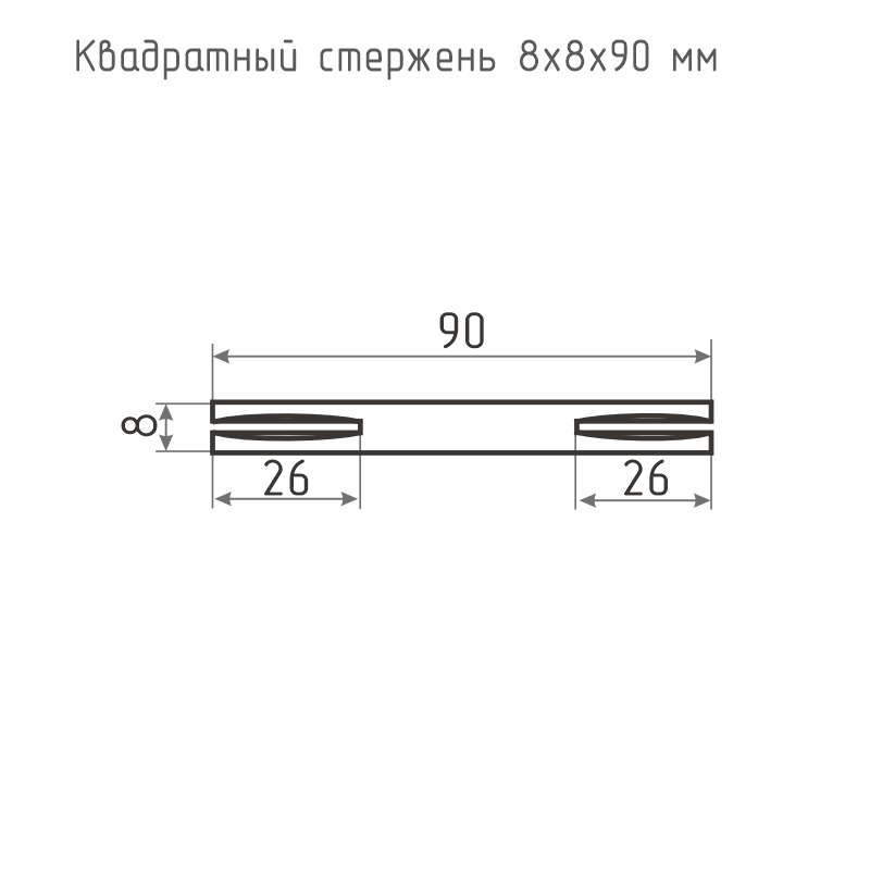 Квадрат для раздельных ручек 8*8 мм матовый хром 130 мм
