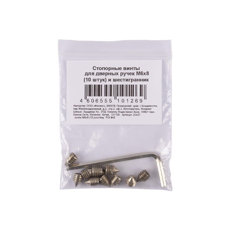 Стопорные винты для дверных ручек (10 штук) M6x8 хром