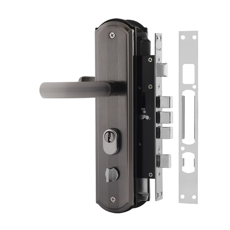 Комплект замка для установки на входные металлические китайские двери. Межосевое расстояние 68мм, бэксет 60мм. Комплект включает в себя 2 ручки на планке, 2 накладки под цилиндр, резиновые уплотнители, корпус замка, ответную планку, крепеж. Цилиндровый механизм в комплектацию не входит, его нужно приобрести отдельно (параметры цилиндра выбирайте исходя из толщины двери). Обратите внимание - данный комплект не универсальный, и устанавливается только на двери правого типа открывания (стоя лицом к двери и открывая её на себя, петли должны быть справа). Корпус выполнен из стали и имеет антикоррозийное напыление. Гарантия на работу замка 1 год.