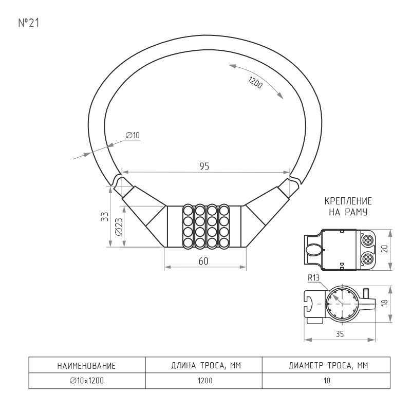 Велосипедный замок №21 с креплением на раму