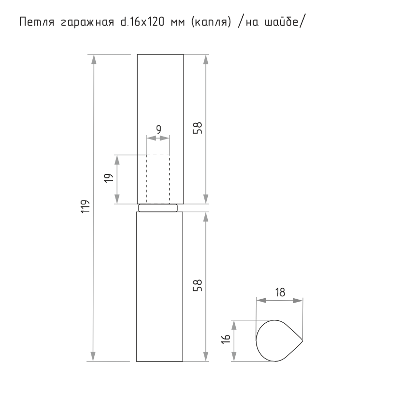 Петля гаражная Петля на шайбе без покрытия 14х100 мм