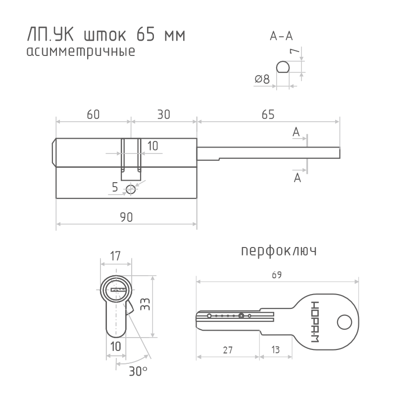 Цилиндровые механизмы со штоком в цвете хром для входных металлических дверей. Такой механизм подходит для установки на двери любой толщины от 50 до 130 мм, что позволяет использовать его на металлических дверях различного типа. 6 пинов и более 12000 комбинаций секретности. Вертушка в комплект не входит. Модель в материале ЦАМ, цвет хром. В комплекте 5 стальных перфорированных ключей. Гарантия на работу цилиндра 1 год.