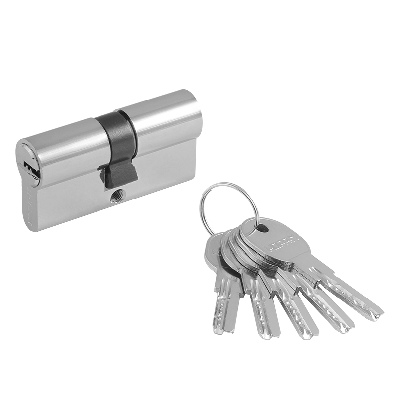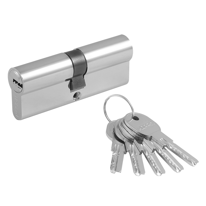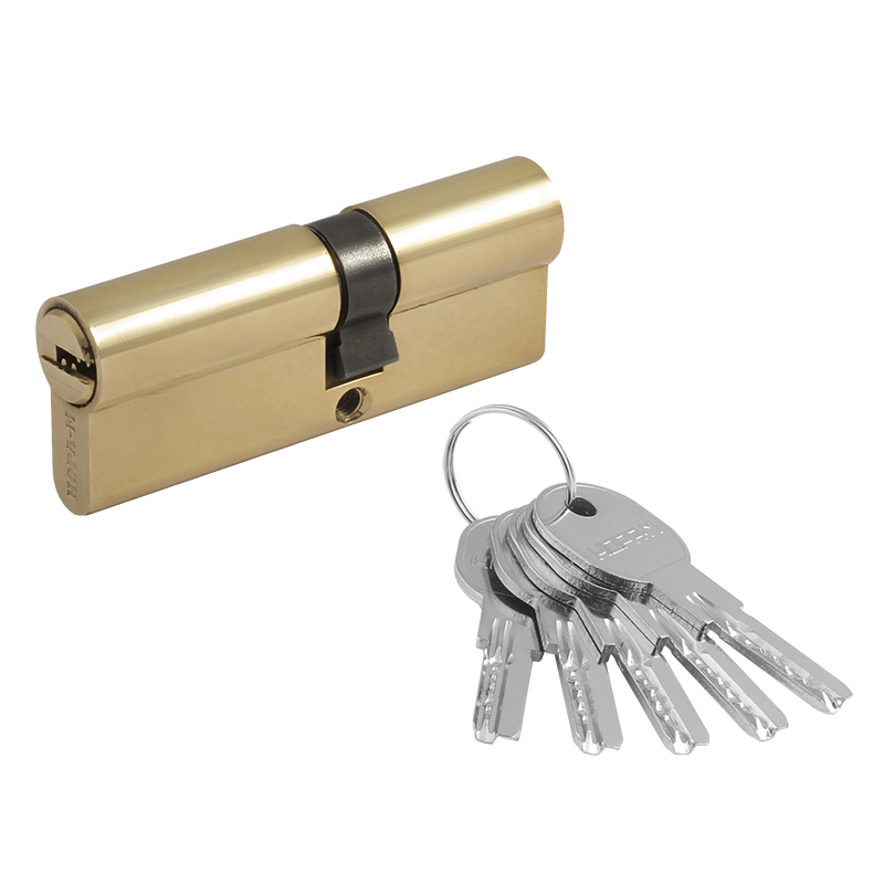 Латунный цилиндр для межкомнатных и входных дверей. 6 пинов, в комплекте 5 перфорированных удлиненных ключей из латуни. Цилиндр имеет штифт из закаленной стали против высверливания. Ресурс работы более 100.000 циклов. Длину цилиндра подбирайте исходя из толщины двери, с небольшим запасом под накладку. Гарантия на работу цилиндра 5 лет